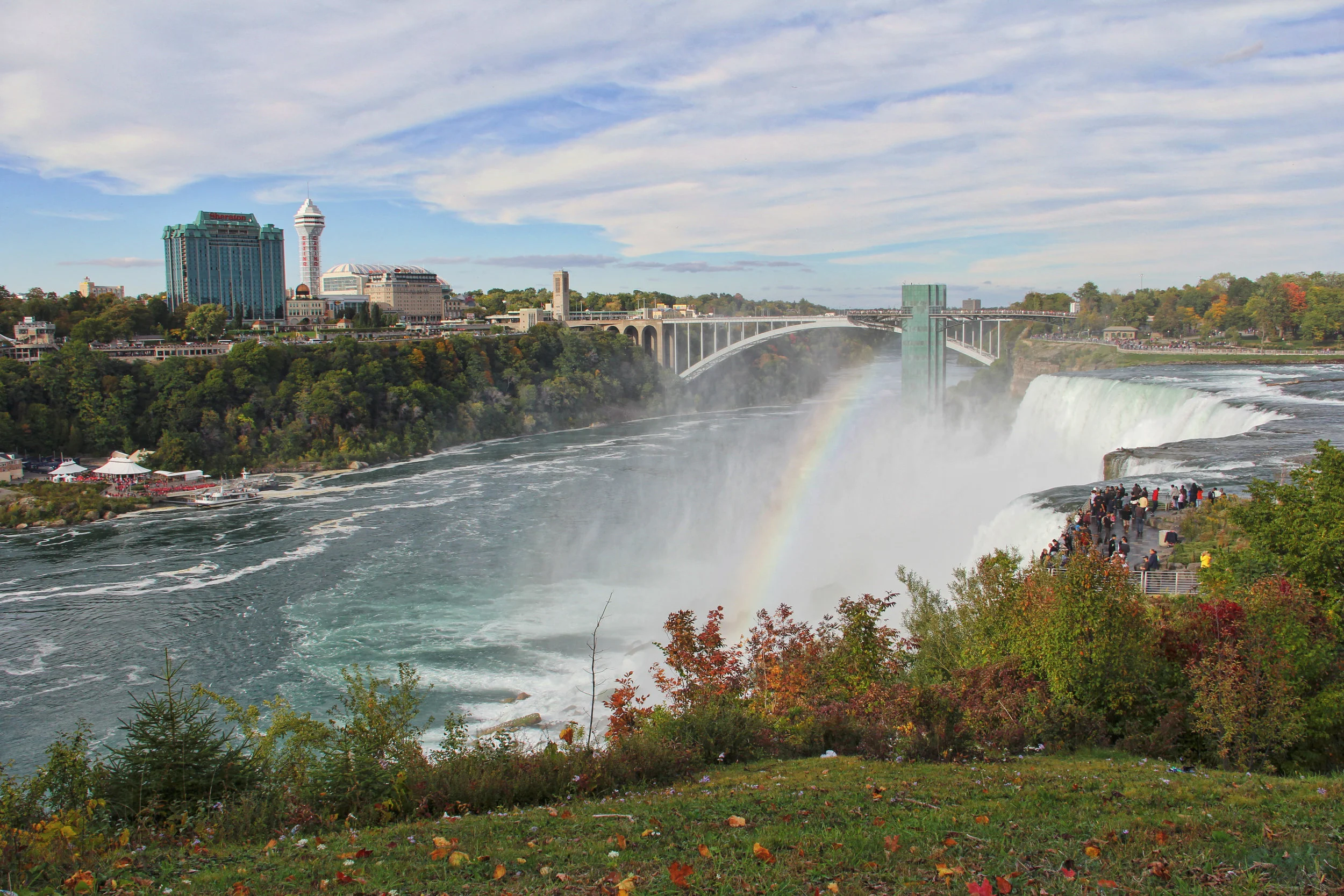 Finding the Falls was pretty easy, just look for the water spray above buildings. The city in the background, over the river, is the Canadian city of Niagara Falls.